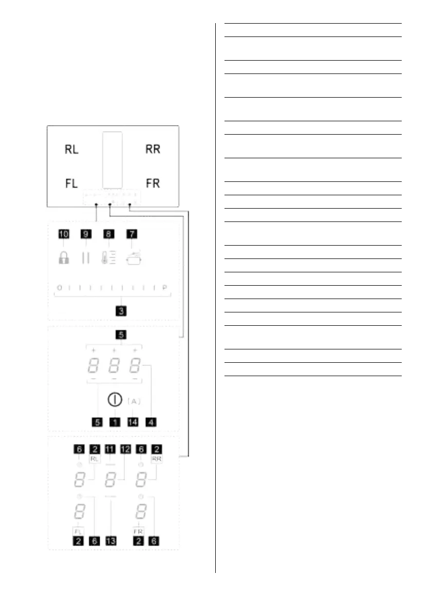 faza de răcire; pe afişajul zonelor de gătit apare simbolul