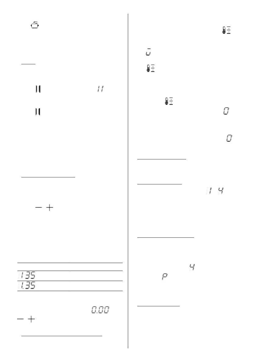 Opomba: z izklopom se obnovi stanje kuhalne površine