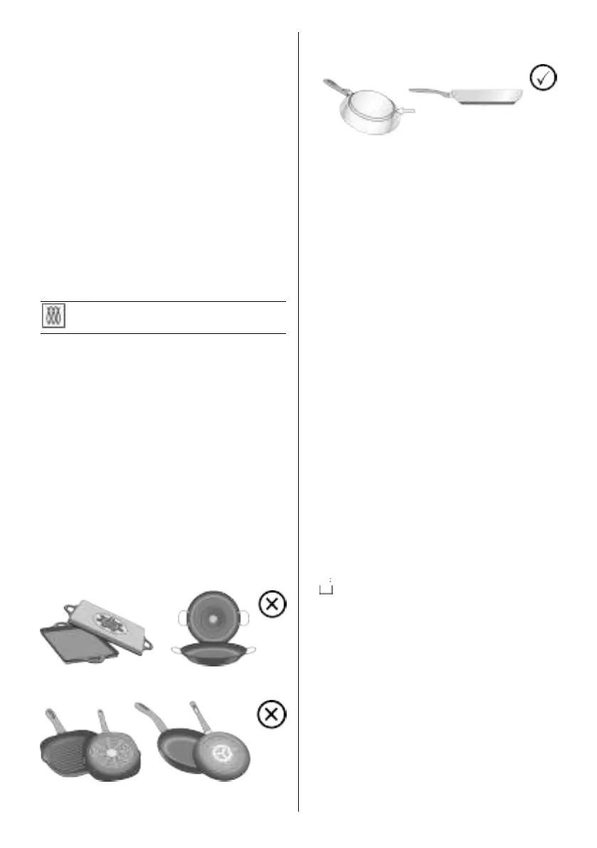 de la zona de cocción; Utilice solo ollas y sartenes con