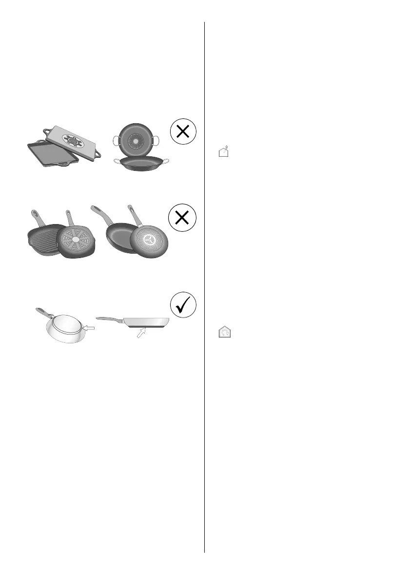 Csak lapos aljú edényeket és serpenyőket használjon; - Ha