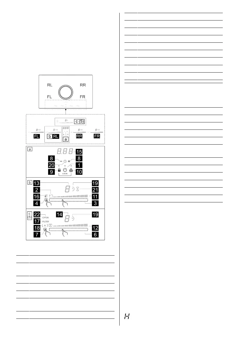 faza de răcire; pe afişajul zonelor de gătit apare simbolul