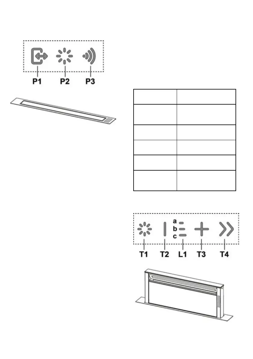 P1. Przycisk otwierania/zamakania panelu zasysania.