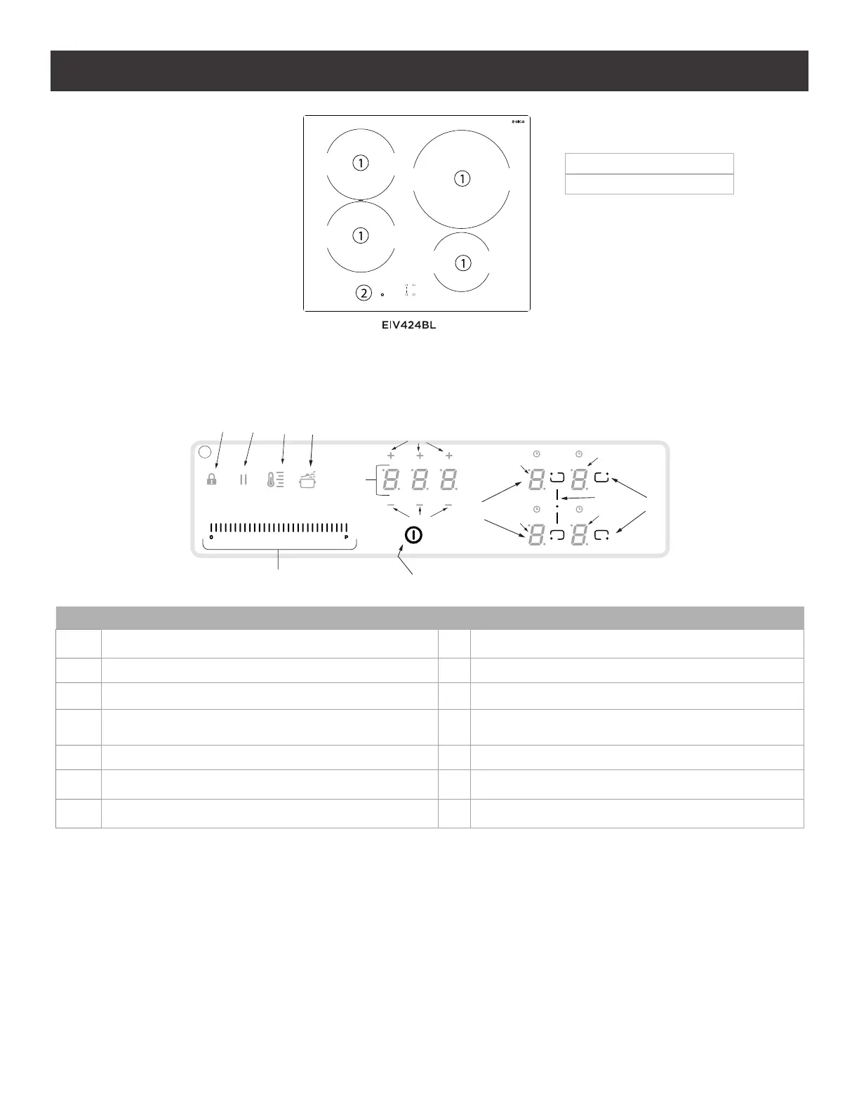 1 ON/OFF de la plaque de cuisson 7 Achage de la zone de cuisson
