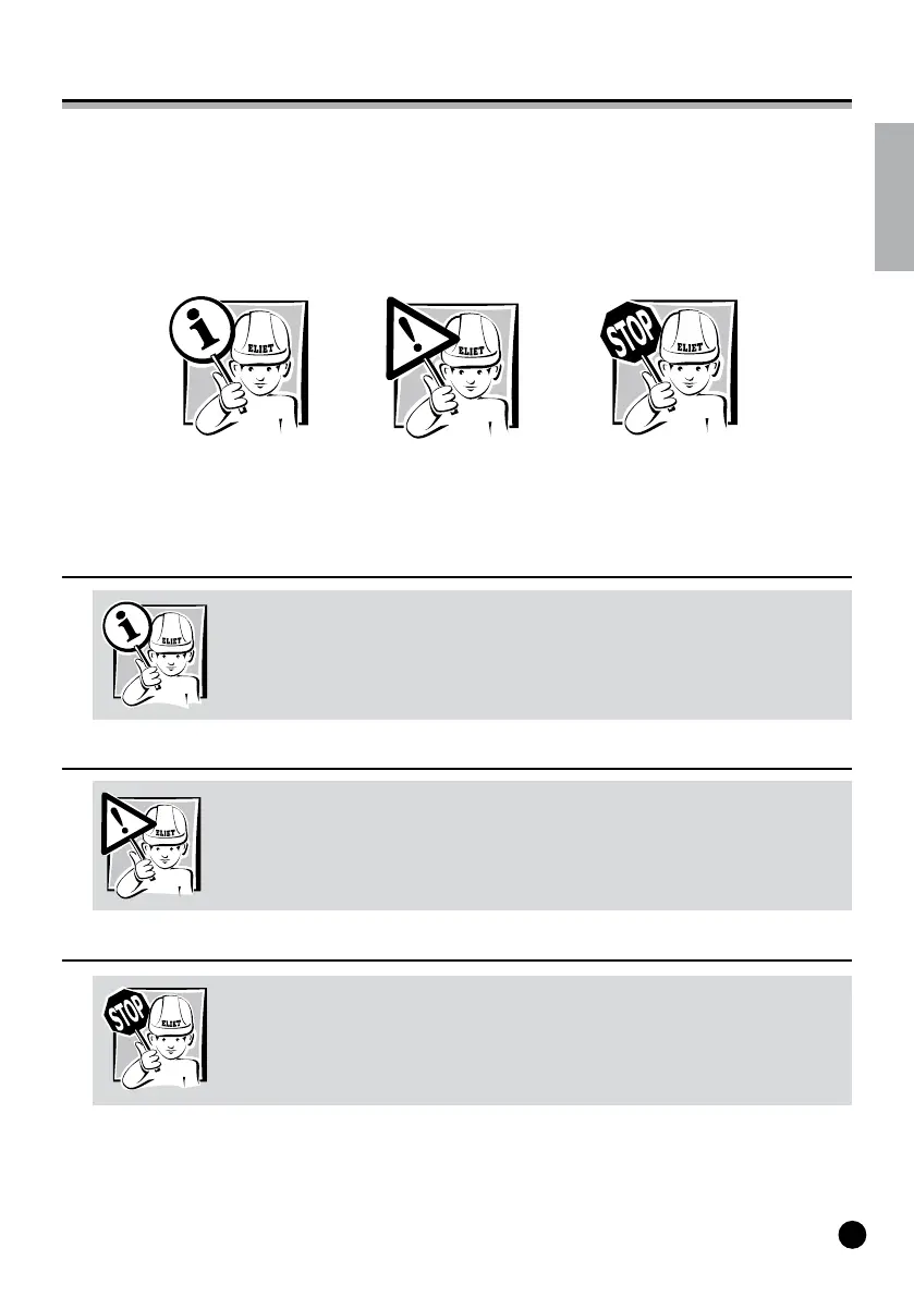 ELIET cannot anticipate every situation in which a risk or danger can occur. The warning symbols