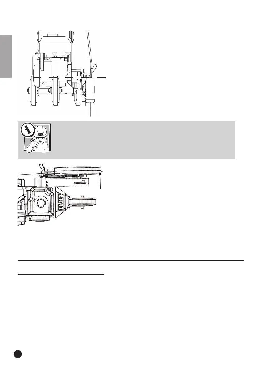 De ‘lijn’ die het mes volgt kan u steeds zien door de boord op de kap (zie onder-
