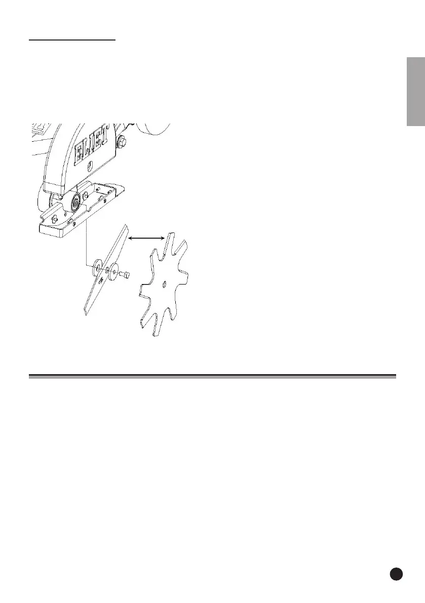 Het mes wordt gemonteerd tussen twee borgringen en vastgezet met een bout