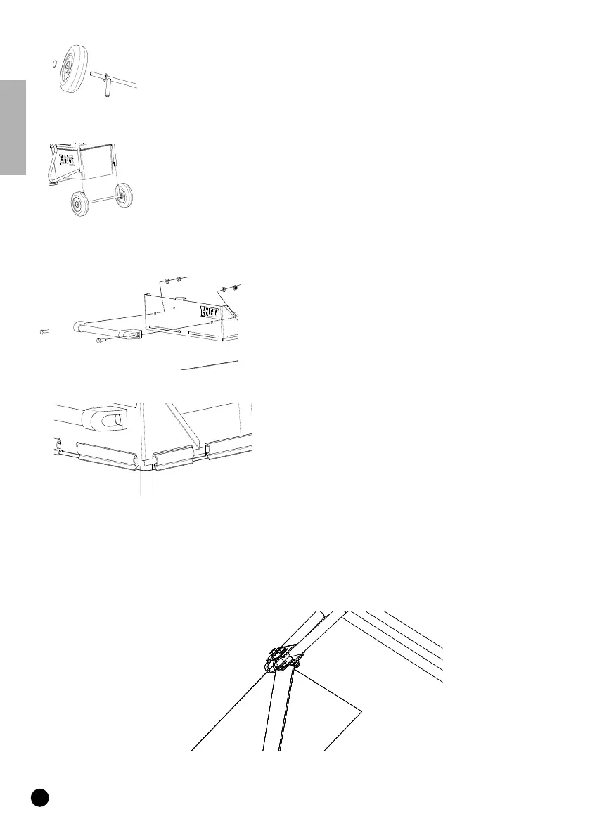 • Men zal eerst de twee wielen op de wielhouder schuiven. Men zet deze