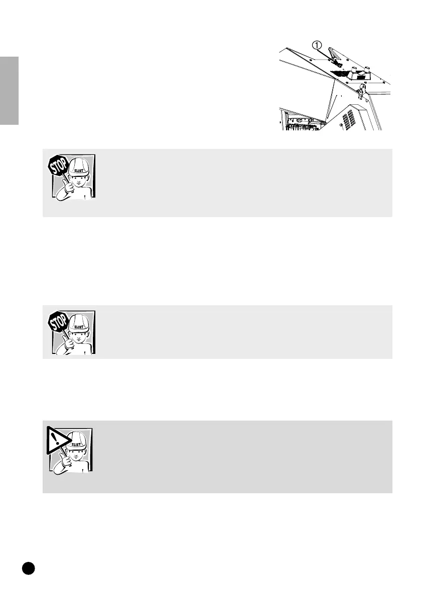 • Reik nooit met je handen verder dan de onderzijde van het anti-projectieschild.