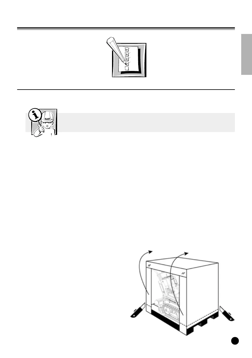 • Na controle van de verpakking zal men overgaan tot het ontpakken van de machine.