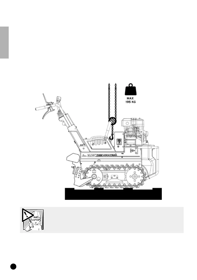 is 195 kg. Zorg dat de takel geschikt is voor het opheffen van dit gewicht. Men