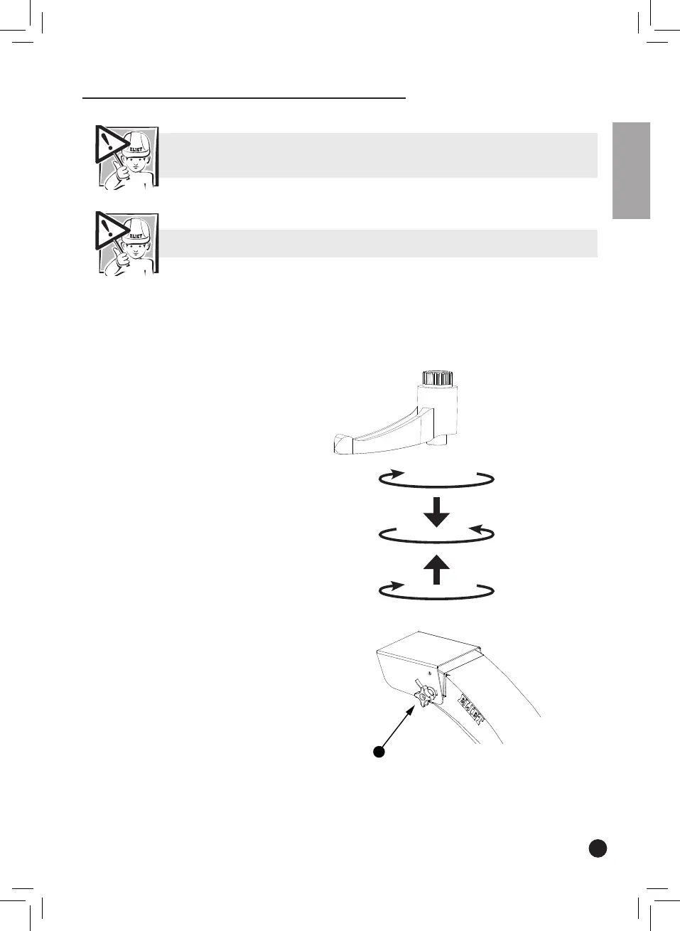 de gewenste positie. Als de blaaspijp in de gewenste positie staat, draait u de hendel (1) terug