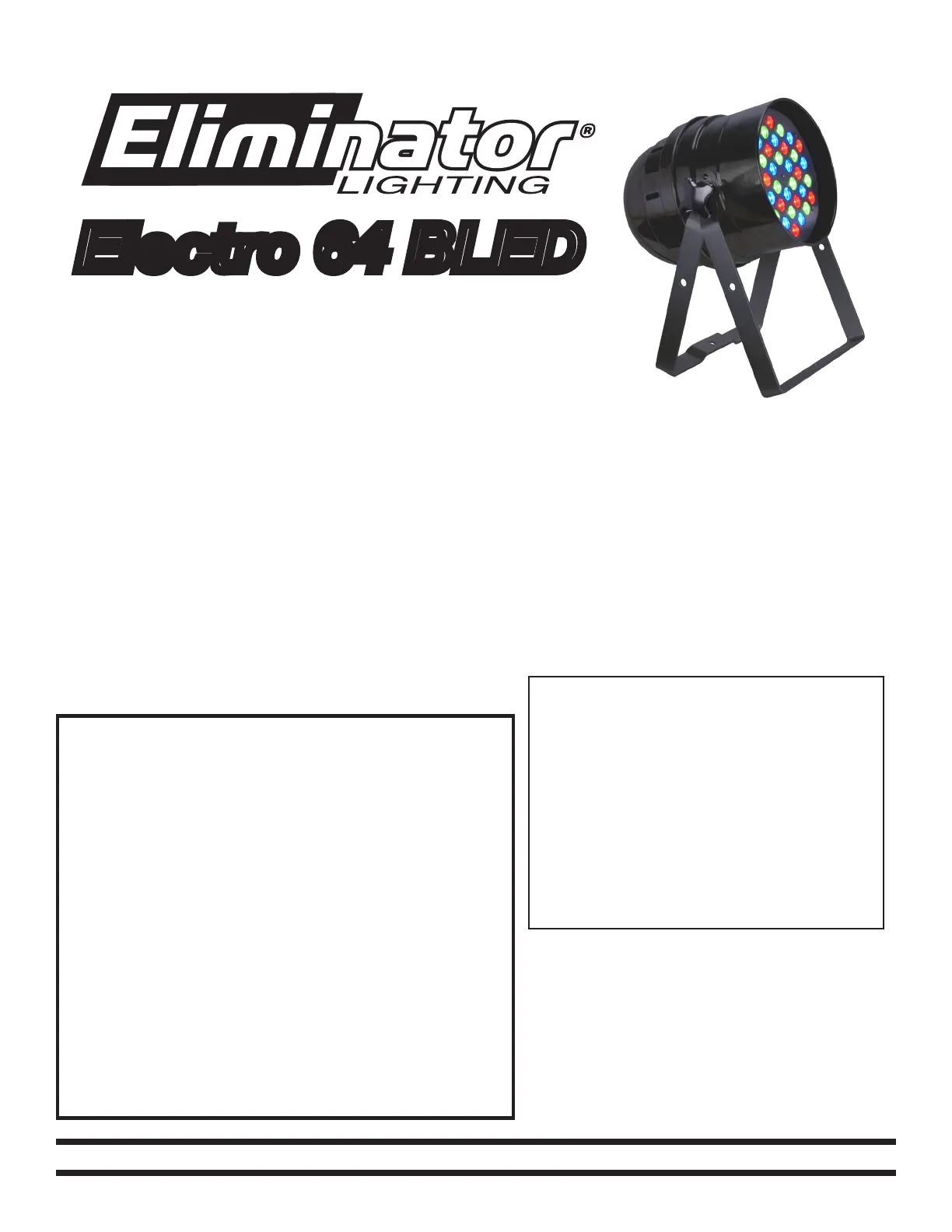 Bekijk gratis de handleiding van Eliminator Lighting Electro 64 BLED, stel vragen en lees de antwoorden op veelvoorkomende problemen, of gebruik onze assistent om sneller informatie in de handleiding te vinden of uitleg te krijgen over specifieke functies.