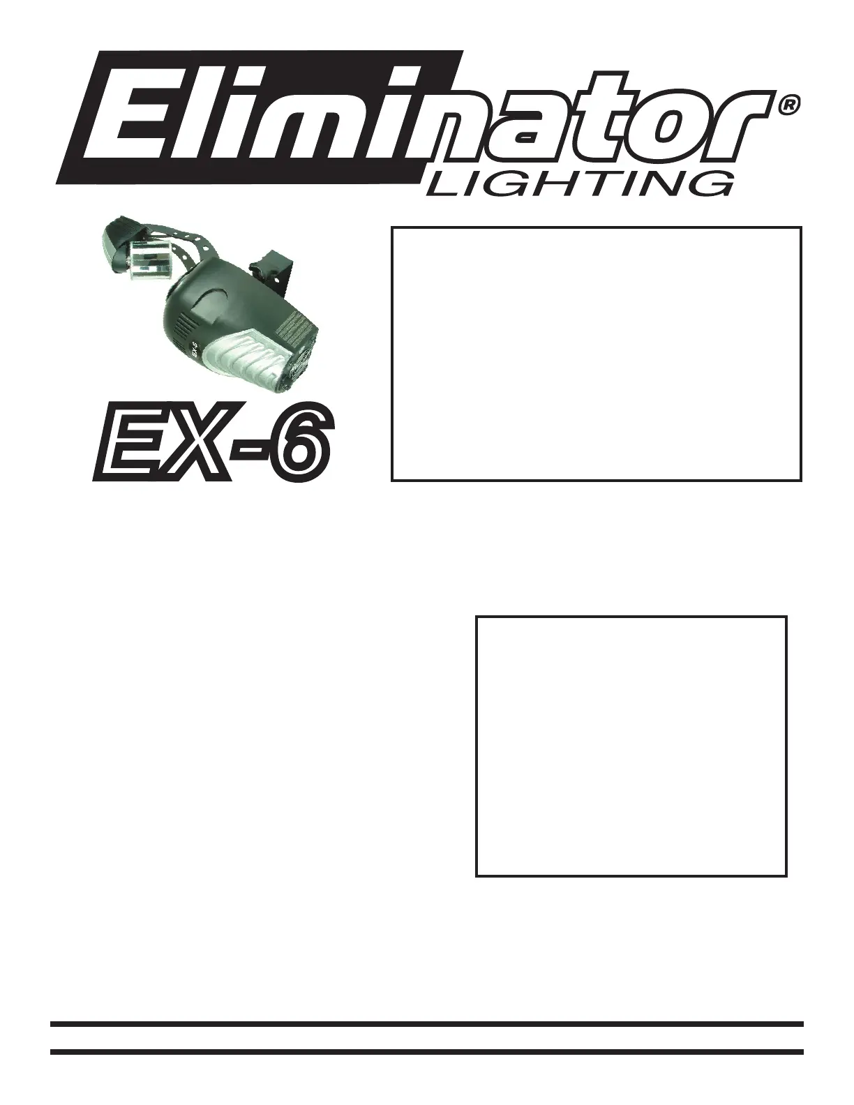 Bekijk gratis de handleiding van Eliminator Lighting EX-6, stel vragen en lees de antwoorden op veelvoorkomende problemen, of gebruik onze assistent om sneller informatie in de handleiding te vinden of uitleg te krijgen over specifieke functies.