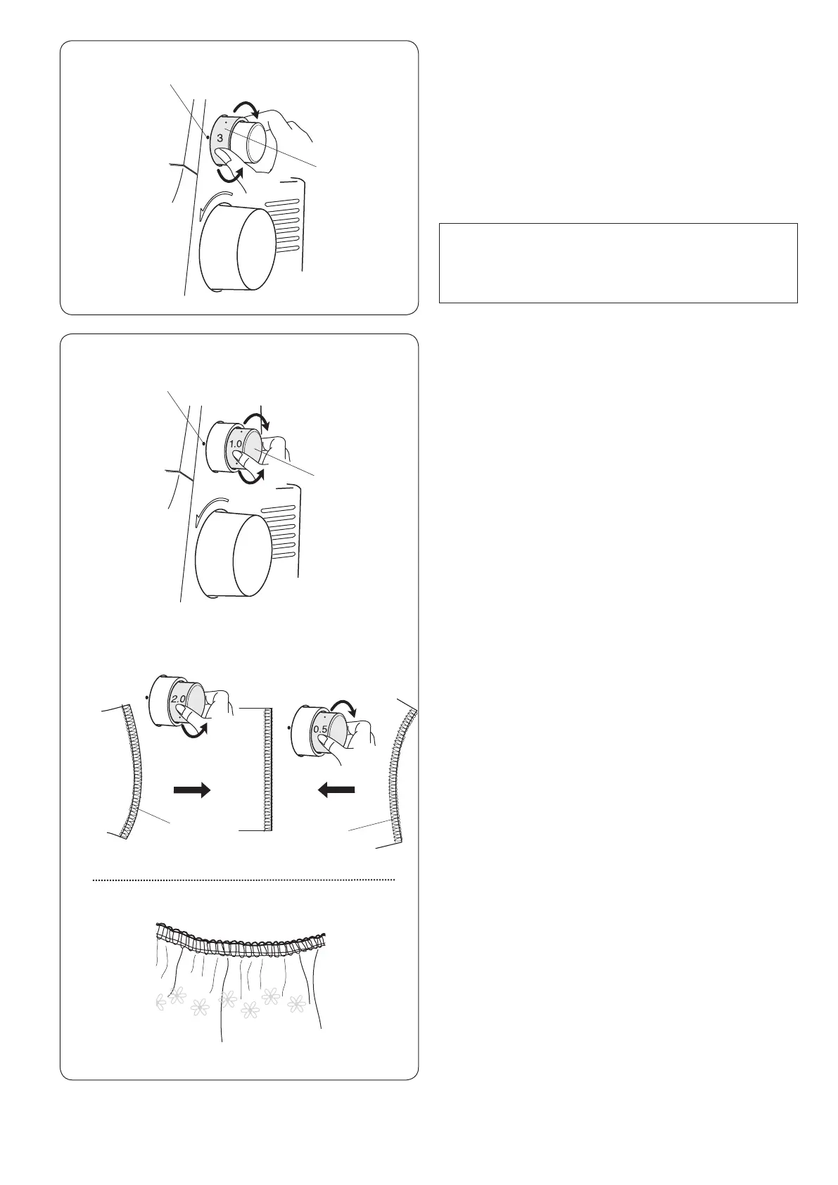 If the sewn fabric is gathered, turn the dial clockwise