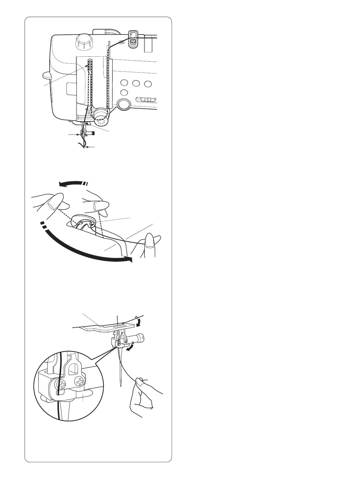 thread up and to the back of the take-up lever. Draw