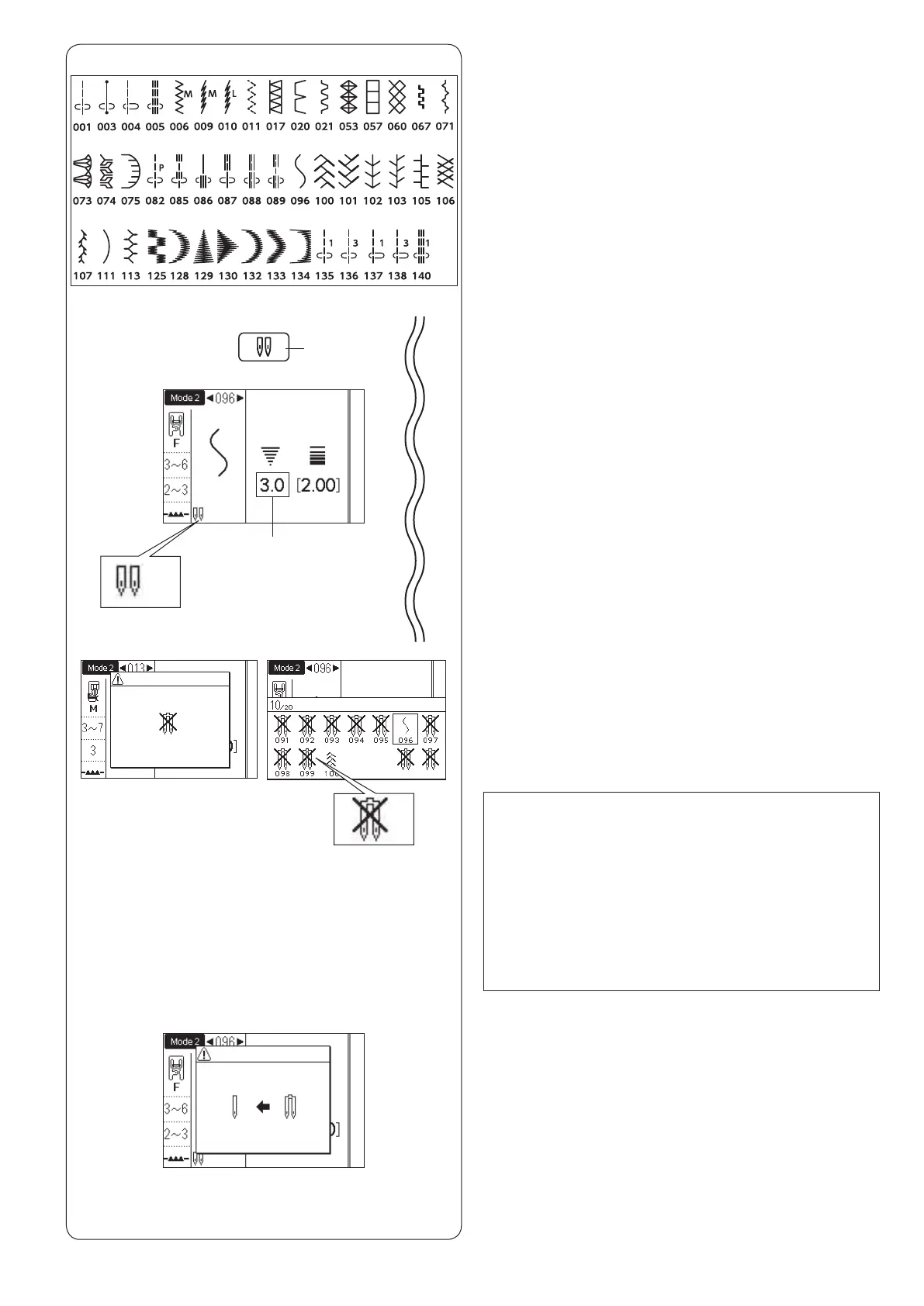 Stitch patterns for twin needle sewing (Mode 2)