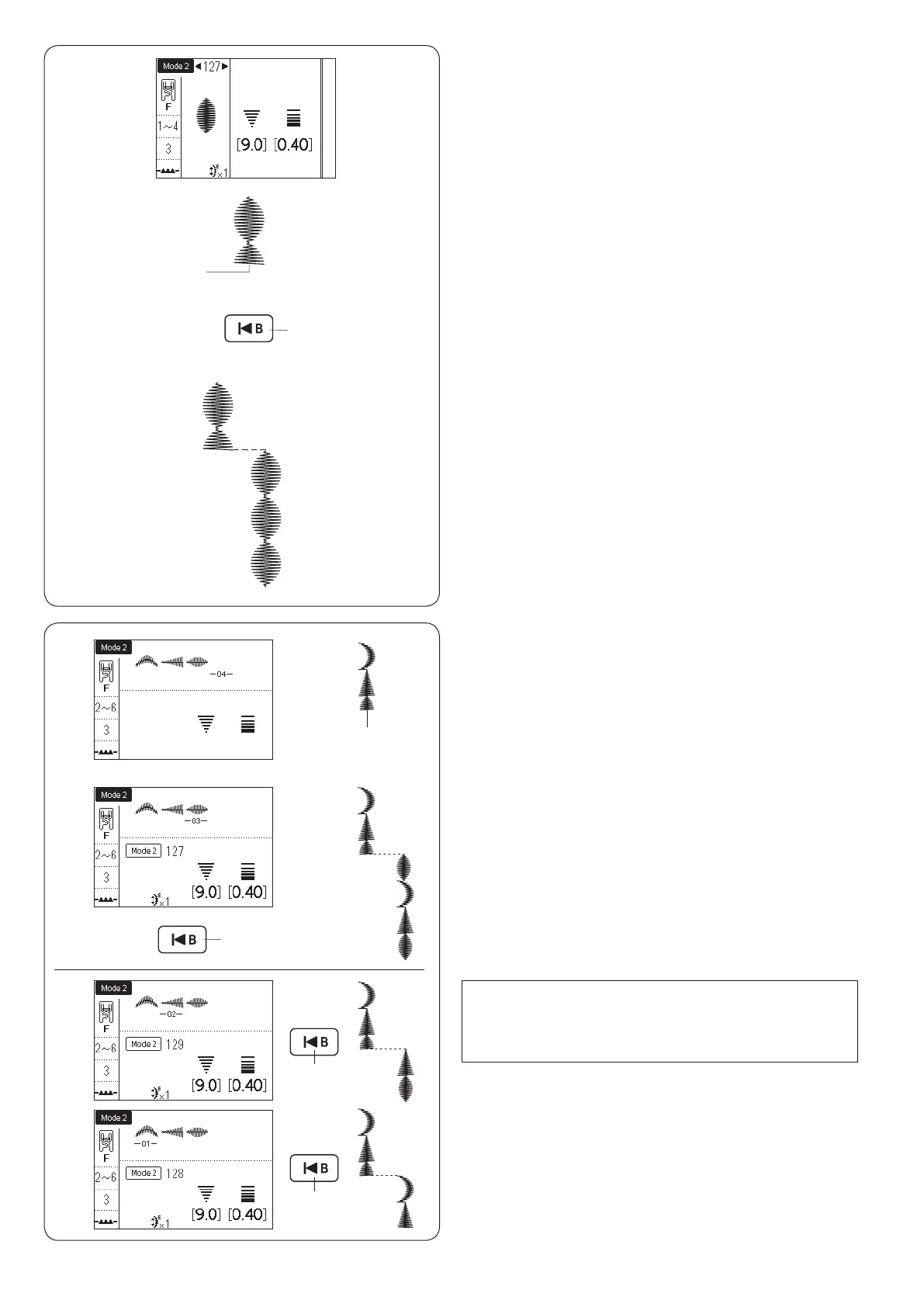 z Select pattern 127 in mode 2. Start sewing.