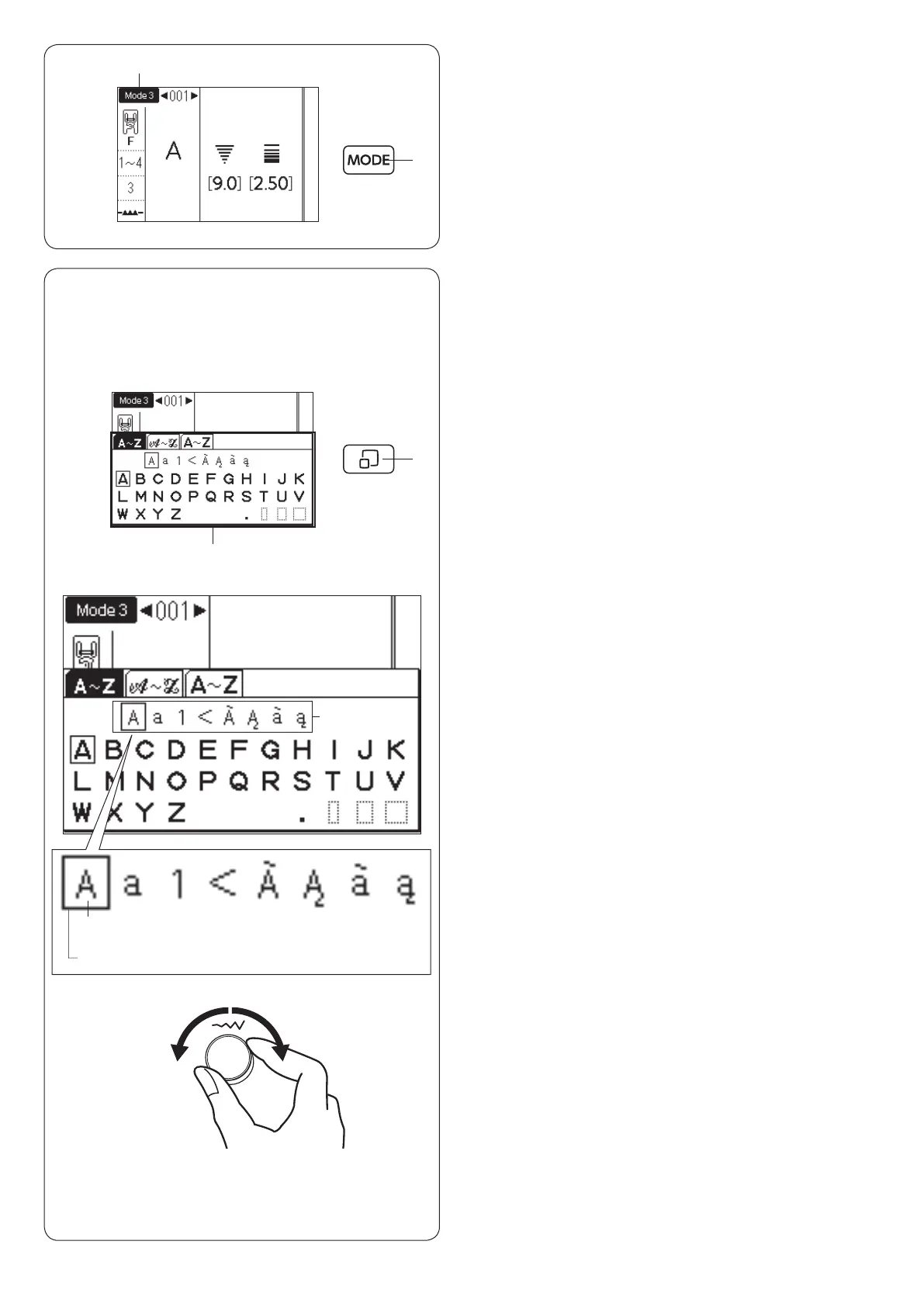 You can select the desired character with the jog dials