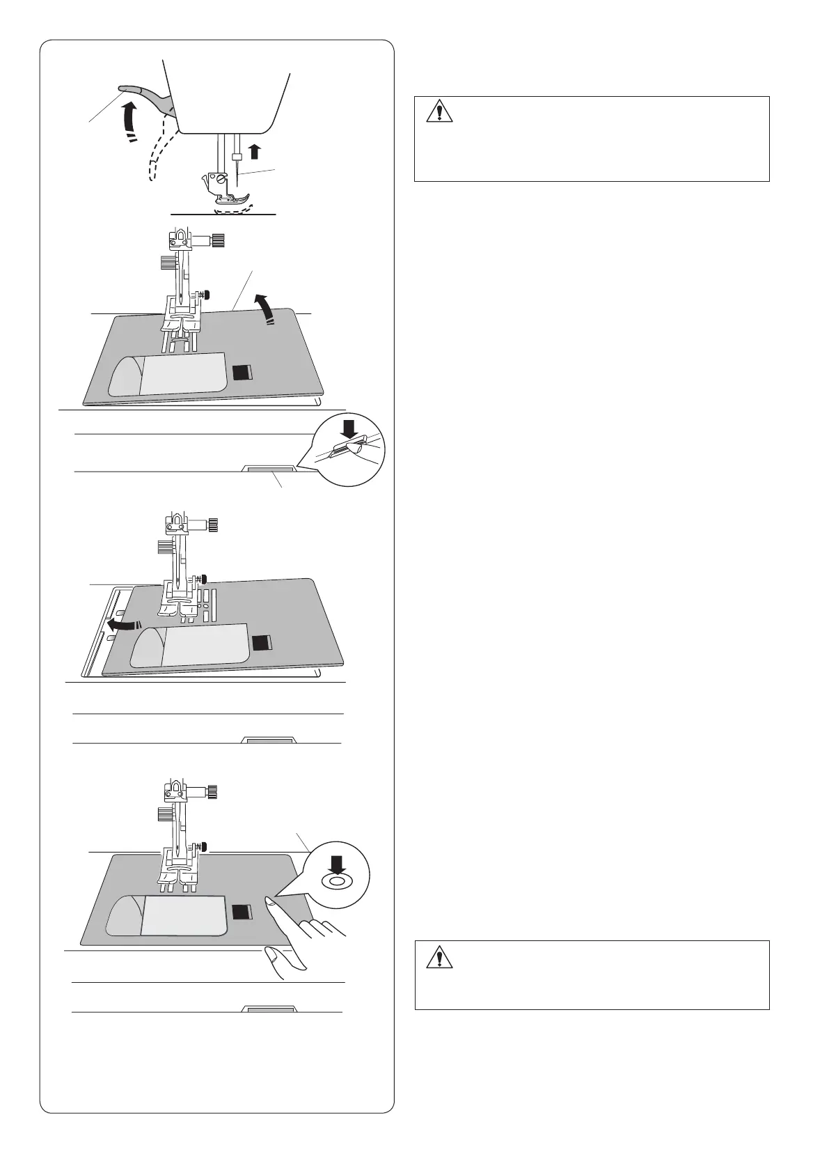 Never press the needle plate release lever while