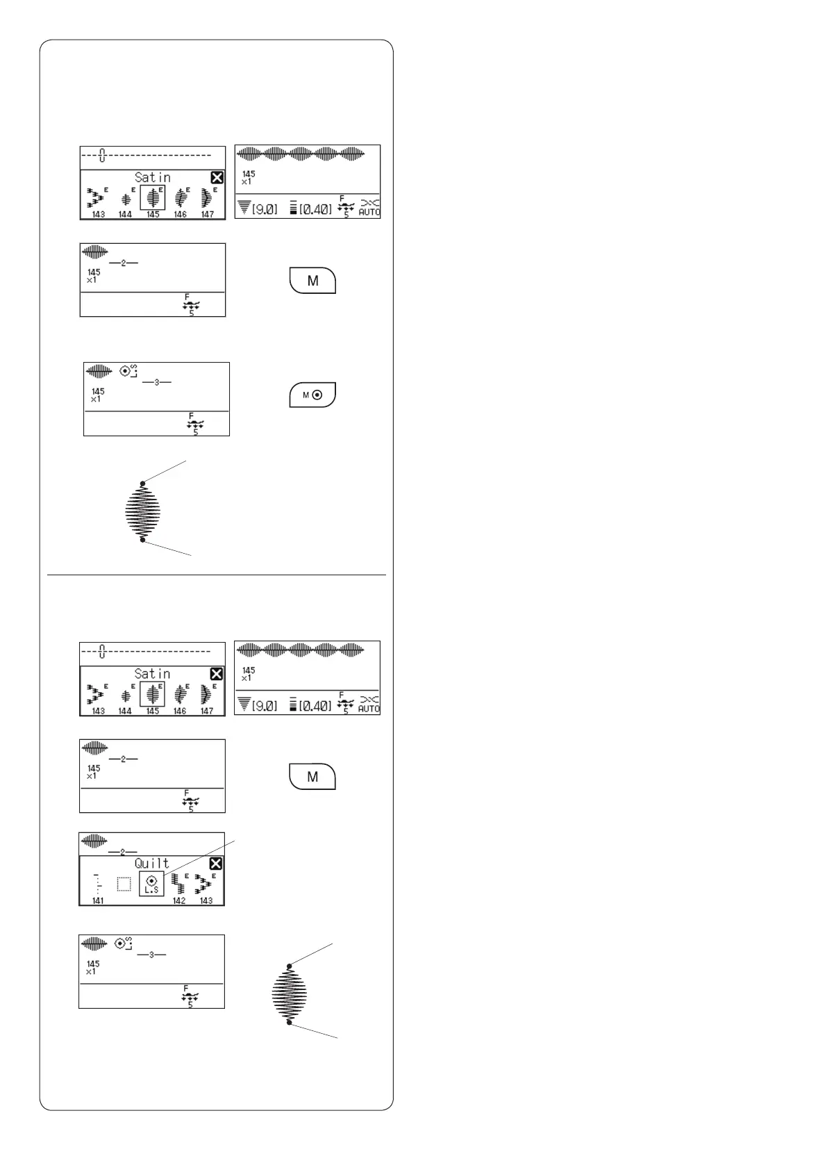 v Start sewing. Pattern 145 and auto-lock stitch will be