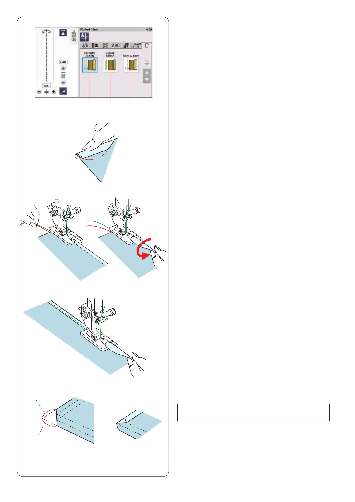 Rolled hemming with straight stitch