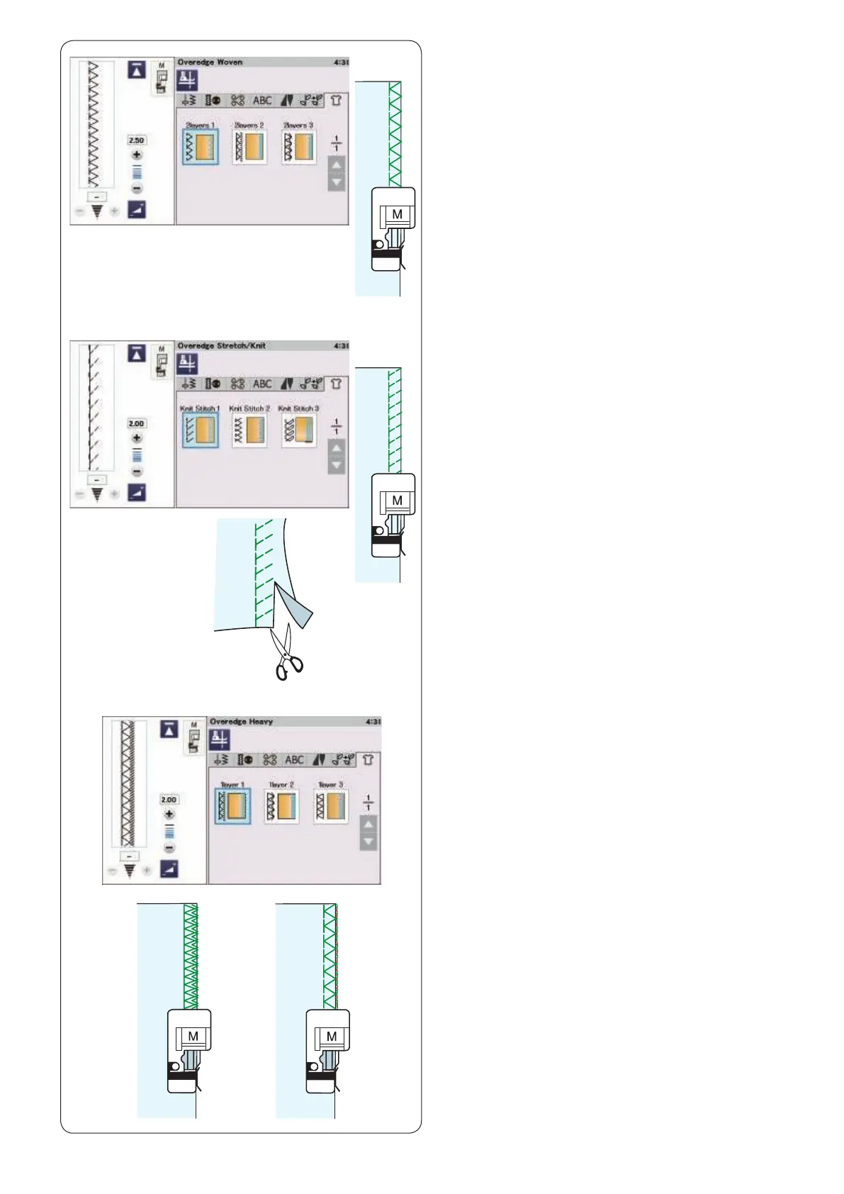 Overcasting stitch for 2 layers of regular woven fabrics.