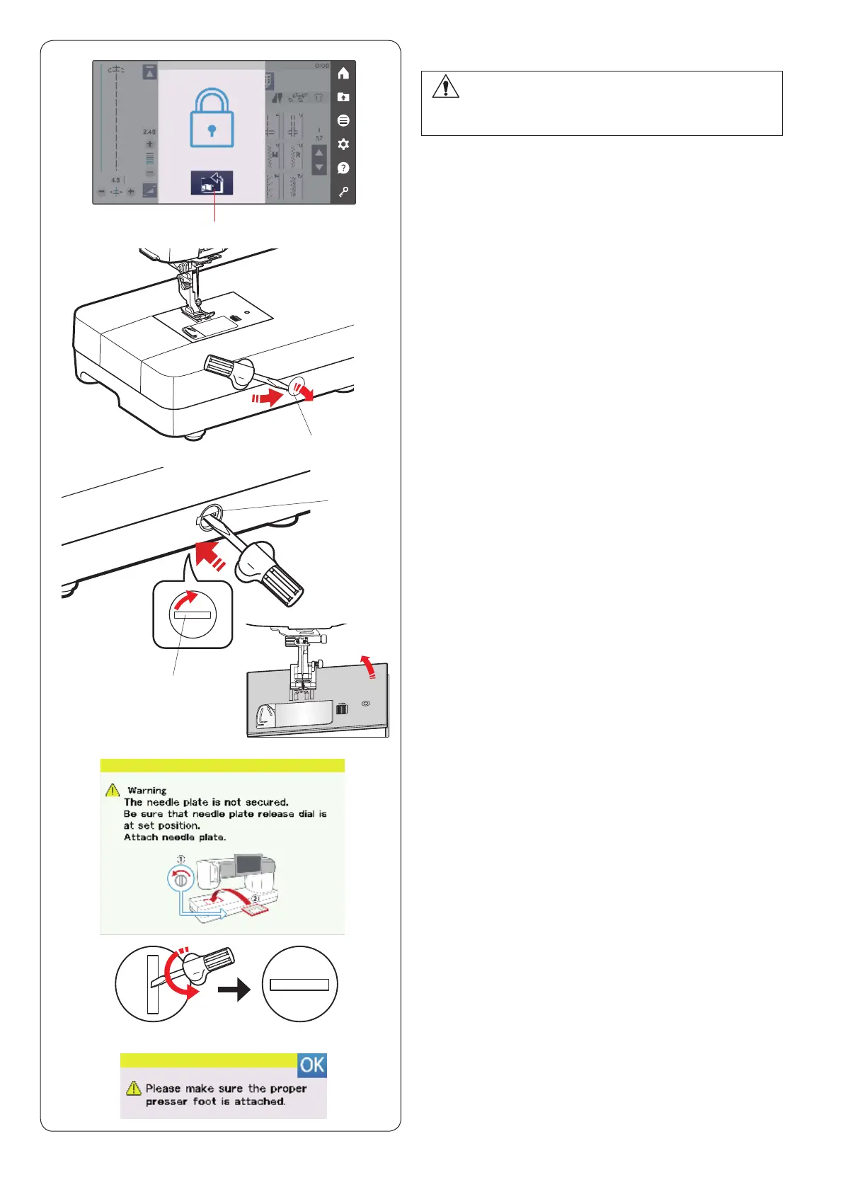 c A warning message will appear that the needle plate