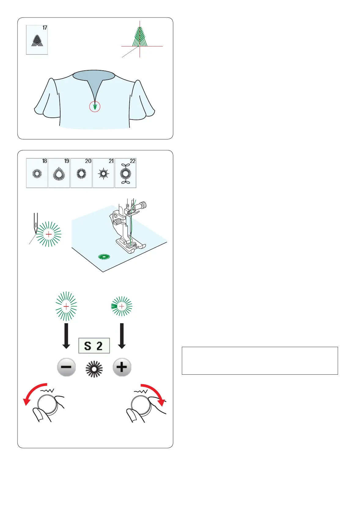 If the eyelet overlaps, turn the stitch width adjusting dial