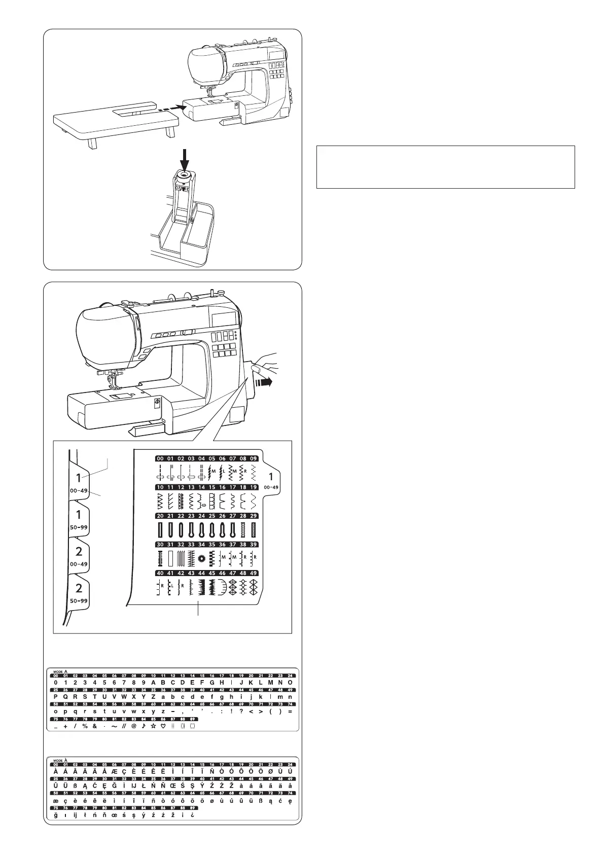 Stitch reference charts (MODE 1 and 2) are stored in the