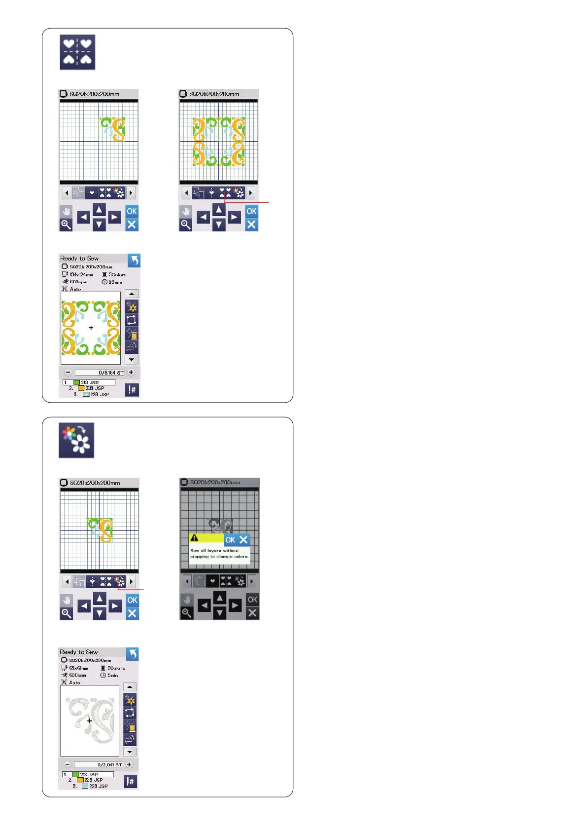 The design will be sewn without stopping for color