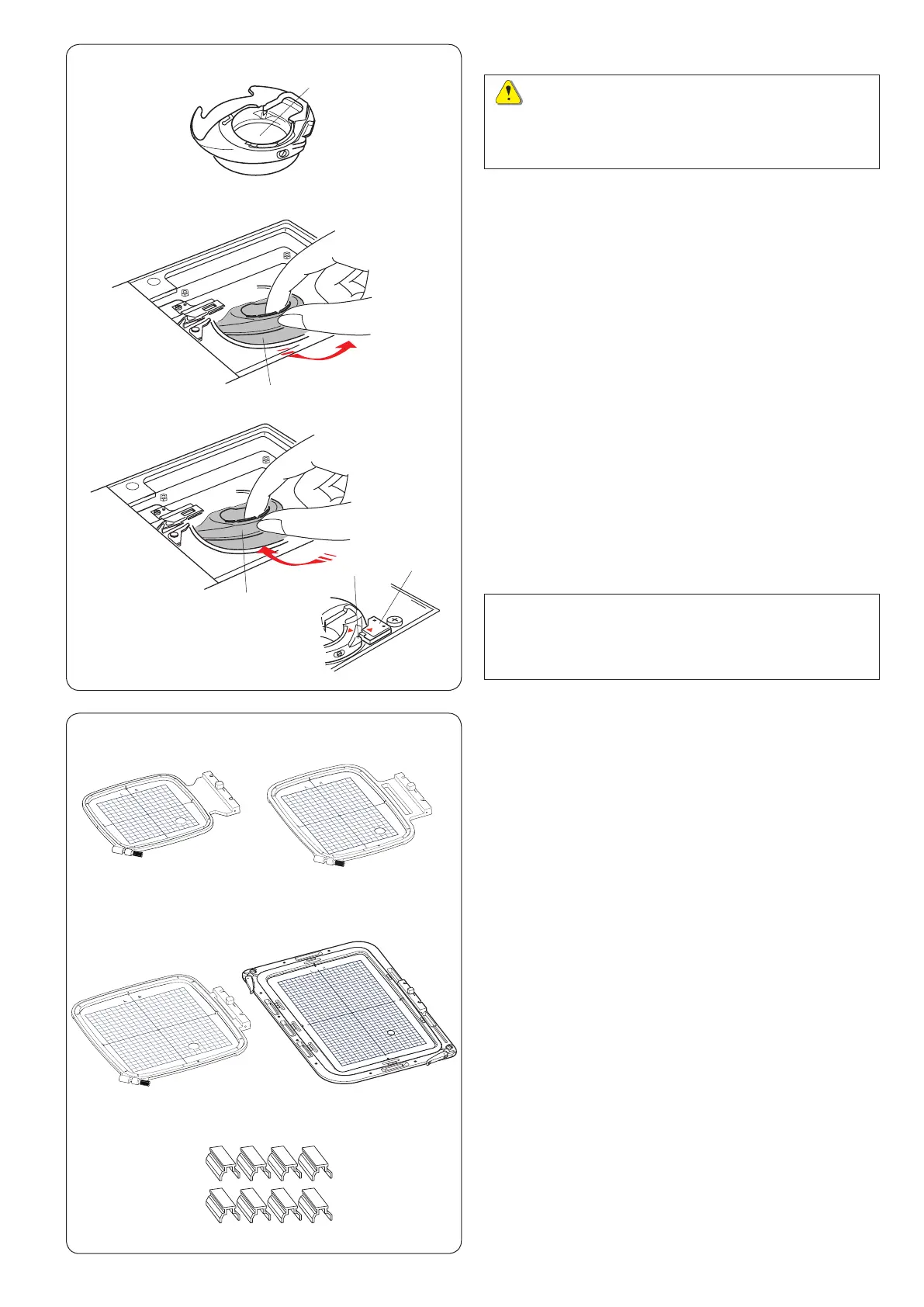 x Insert the special bobbin holder into the hook race.