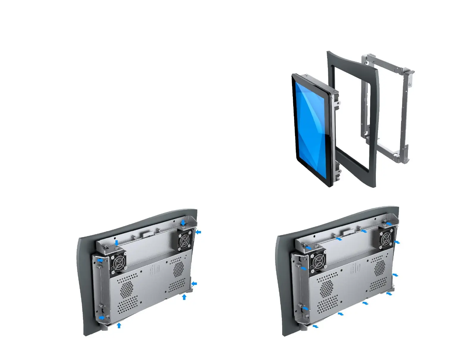 Please ensure 2” clearance behind the touch screen display for airflow.