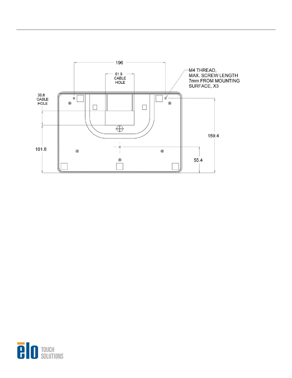 For the 15 inch touchmonitor, a threaded three-hole mounting pattern for M4 screws is provided