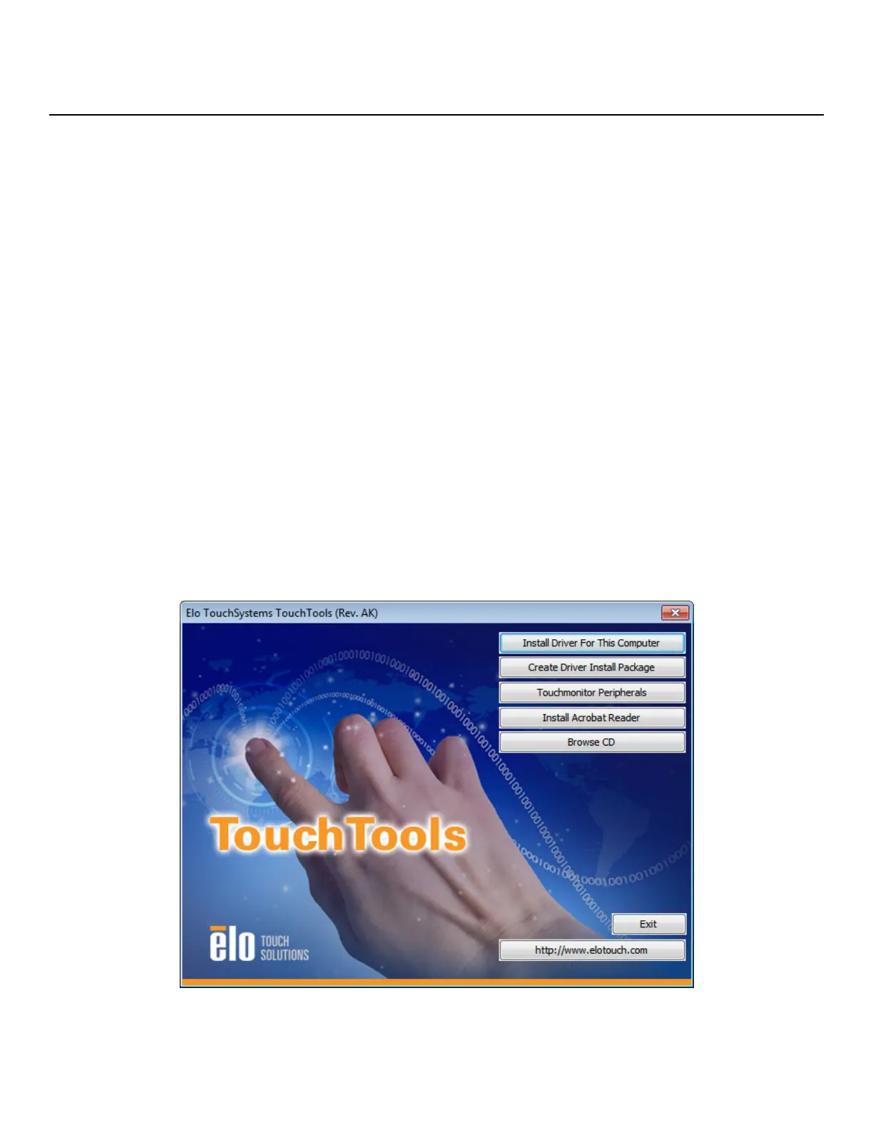 drive. The CD should automatically run the Elo TouchTools application. Select “Install Driver for This
