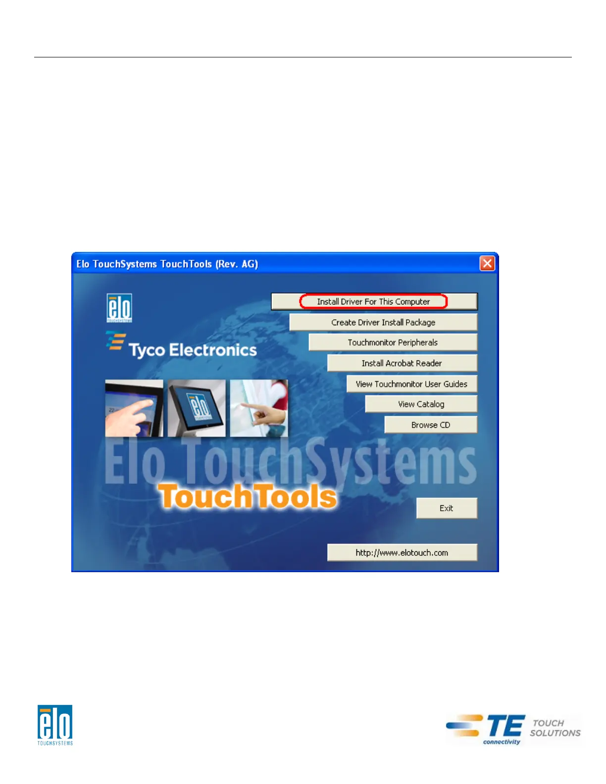 automatically run the Elo TouchTools application. Select “Install Driver for This computer”: