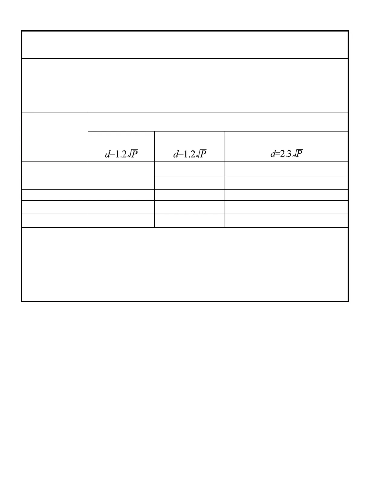 上記に記載されていない最大出力電力で定格されている送信機に関しては、送信機の周波数に適用さ