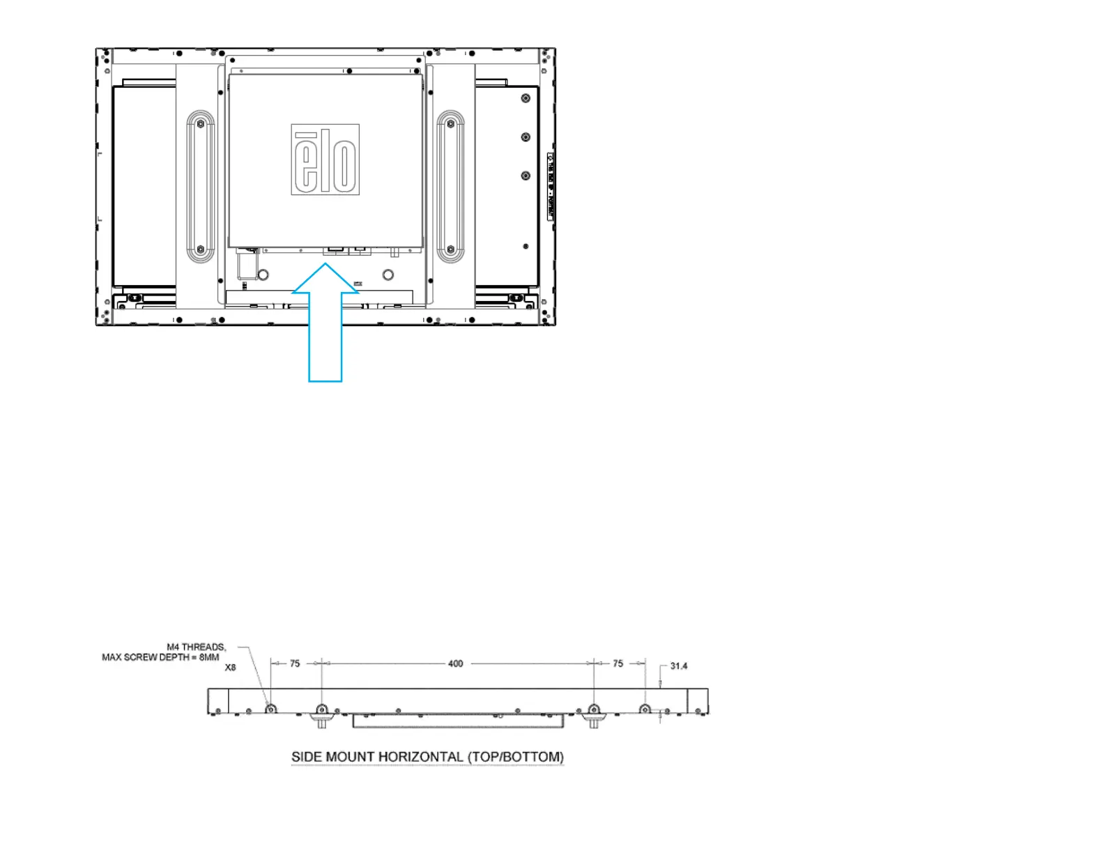 Threaded holes are provided on the sides of the monitor for mounting using the provided brackets. Side mount
