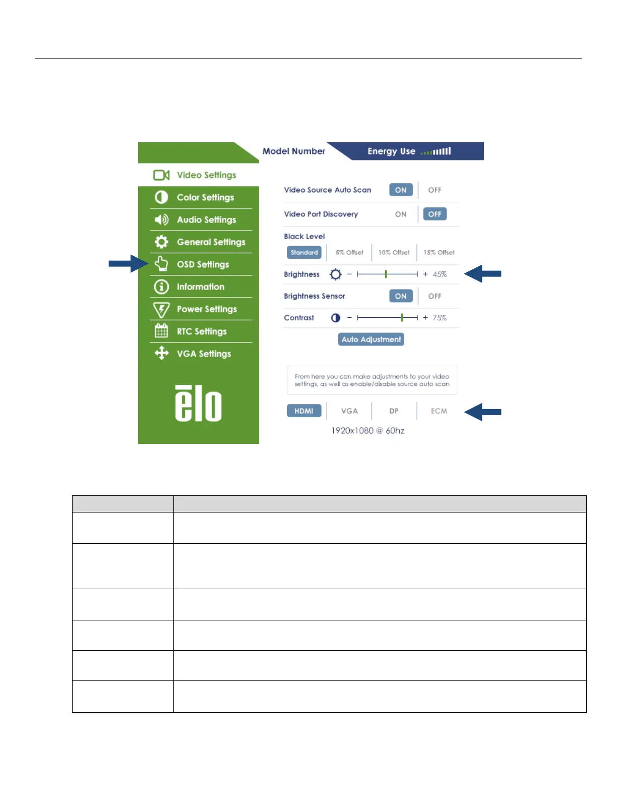 This monitor uses an easy-to-navigate Touch OSD interface. Use the settings menu in the