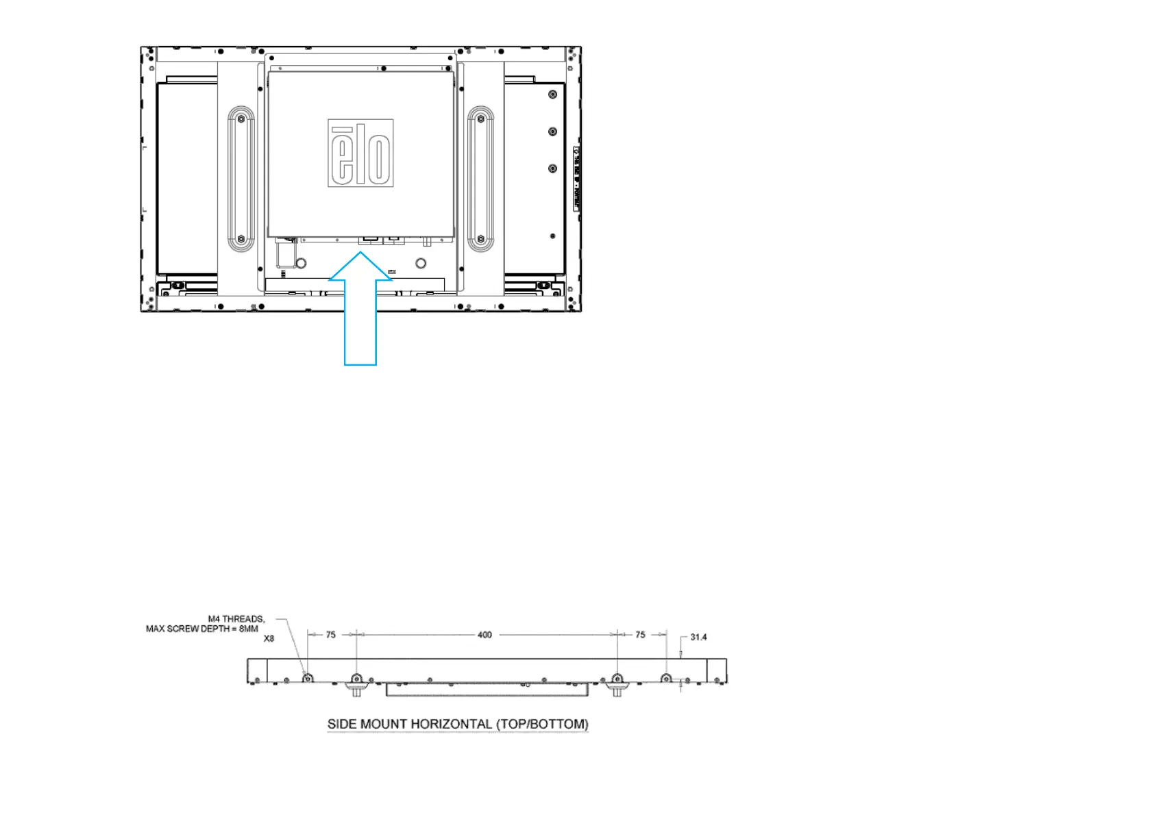 Threaded holes are provided on the sides of the monitor for mounting using the provided brackets. Side mount