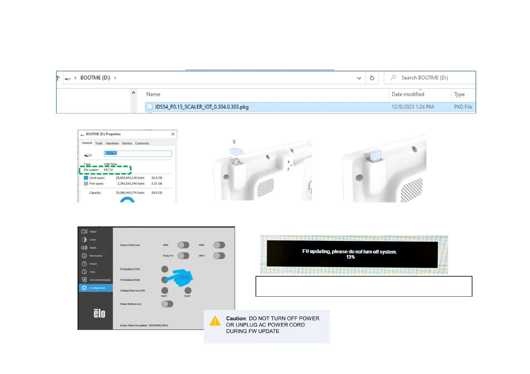 • Download IDSx4 FW Package from Downloads | Elo® Official Website (elotouch.com) and store FW package (.pkg) into USB flash
