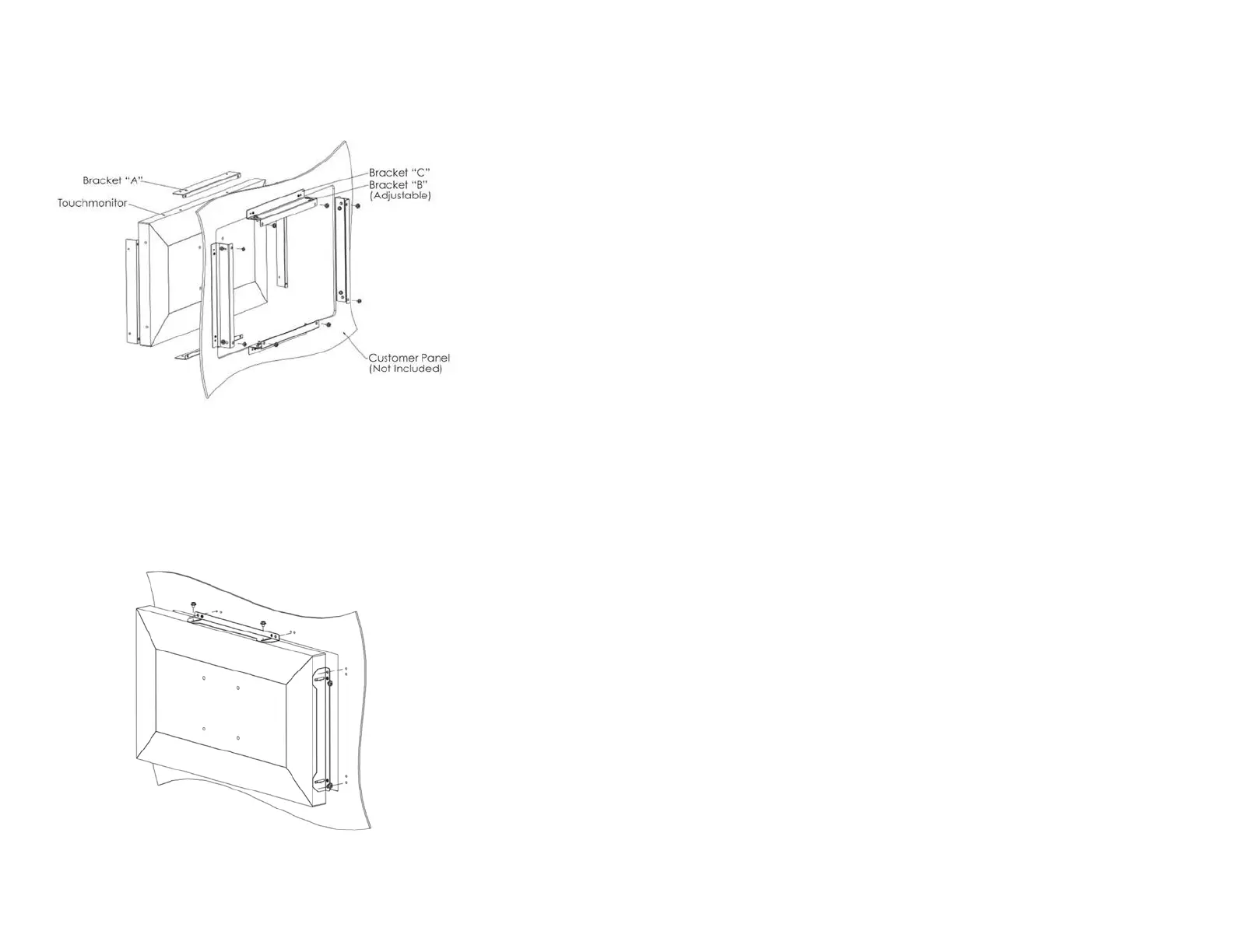 Adjust depth of bracket “B” so monitor is flush with customer panel