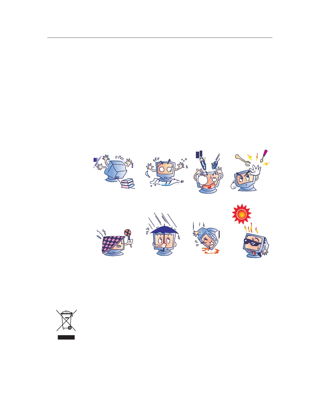 • Avoid getting liquids inside your touchmonitor. If liquid does get inside, have a qualified