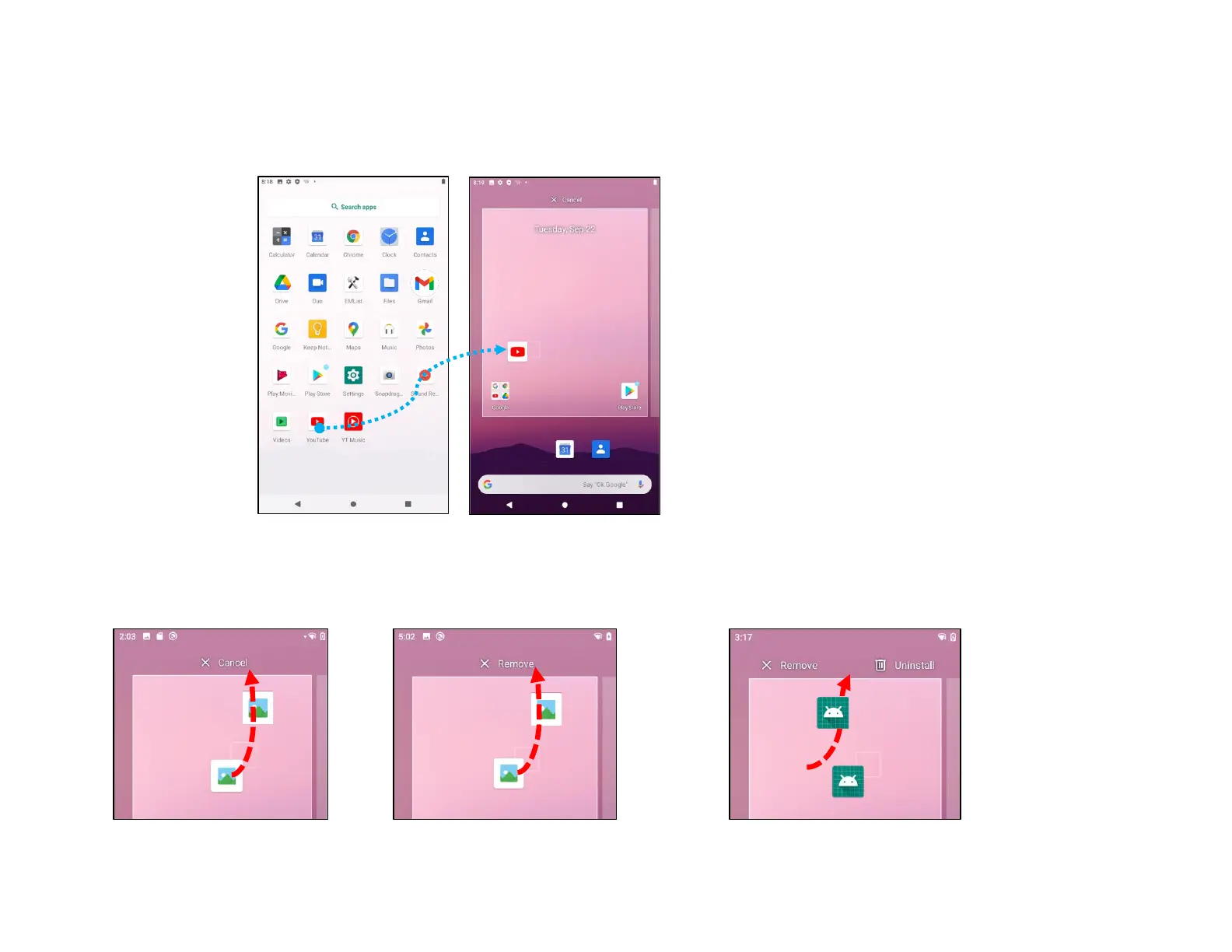• To uninstall an app, press and hold then drag the icon to “Uninstall”.