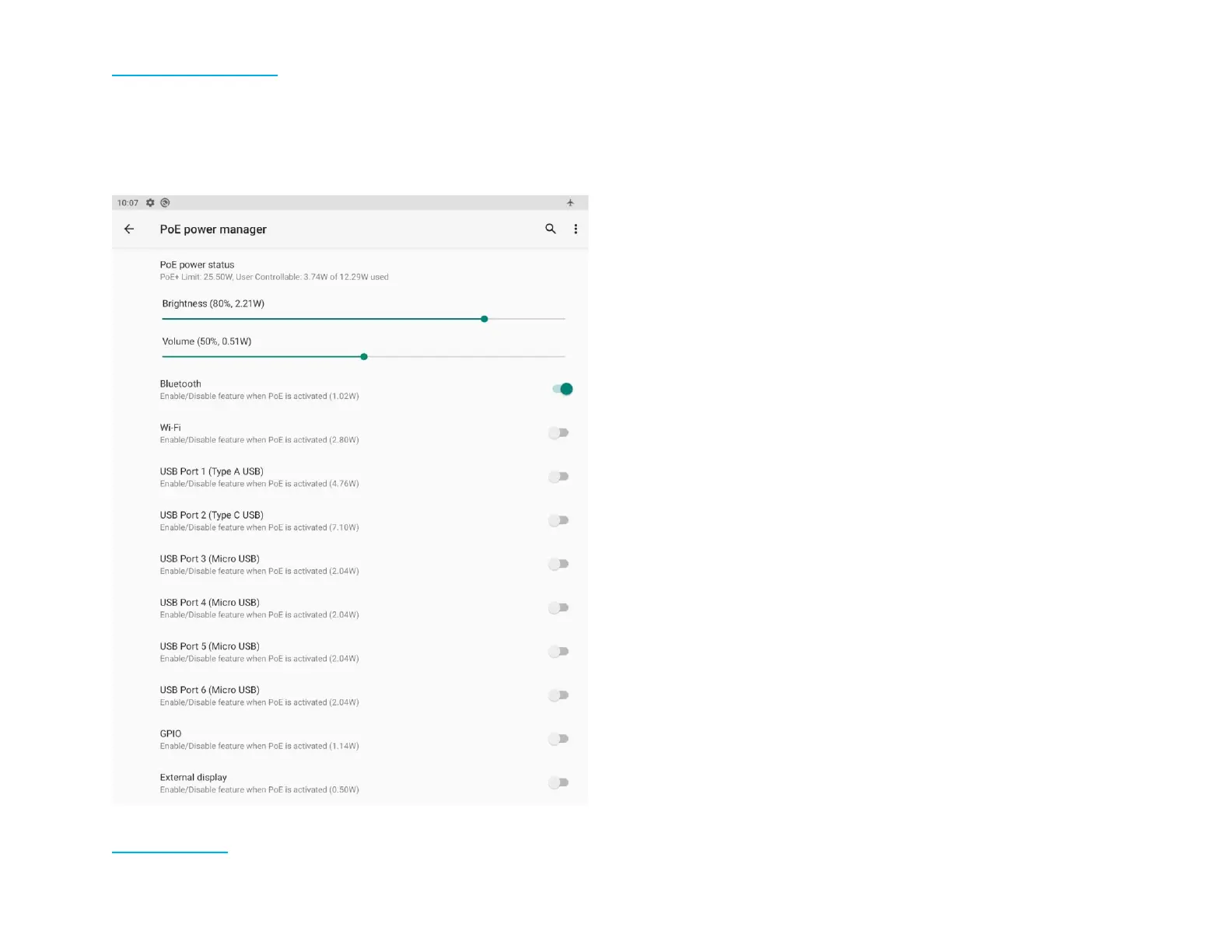 When Power over Ethernet is being used, the PoE power manager allows the ability to enable and disable available features.