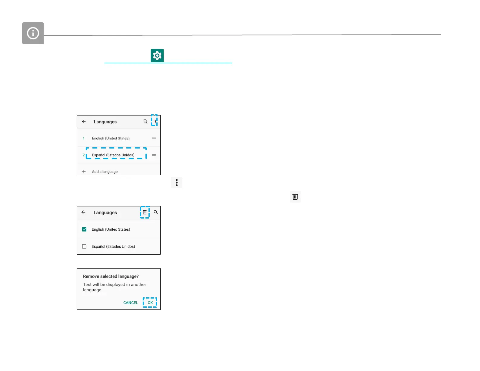 • Tap OK to remove selected language.