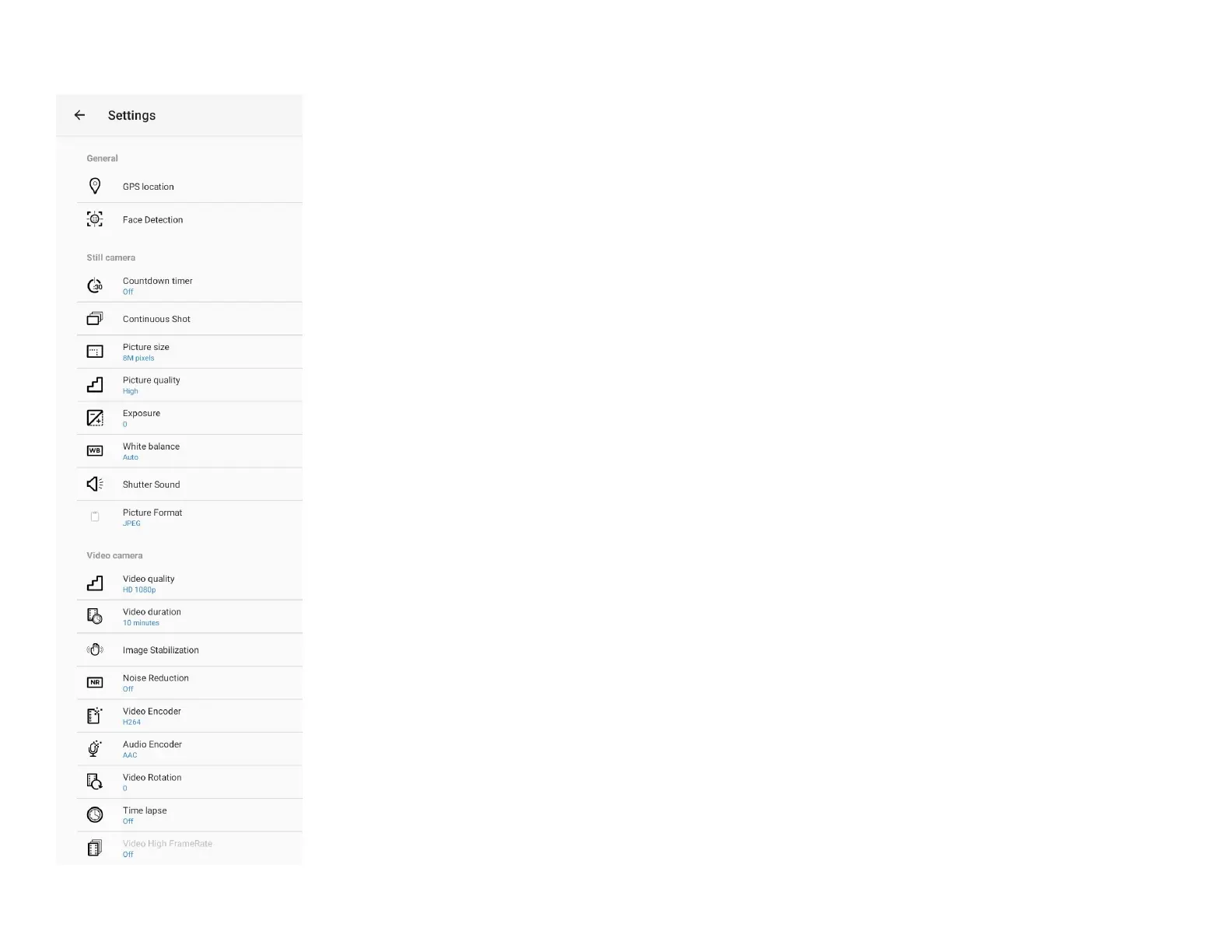 • Video high frame rate (FPS) can be enabled. (not available in time lapse mode)