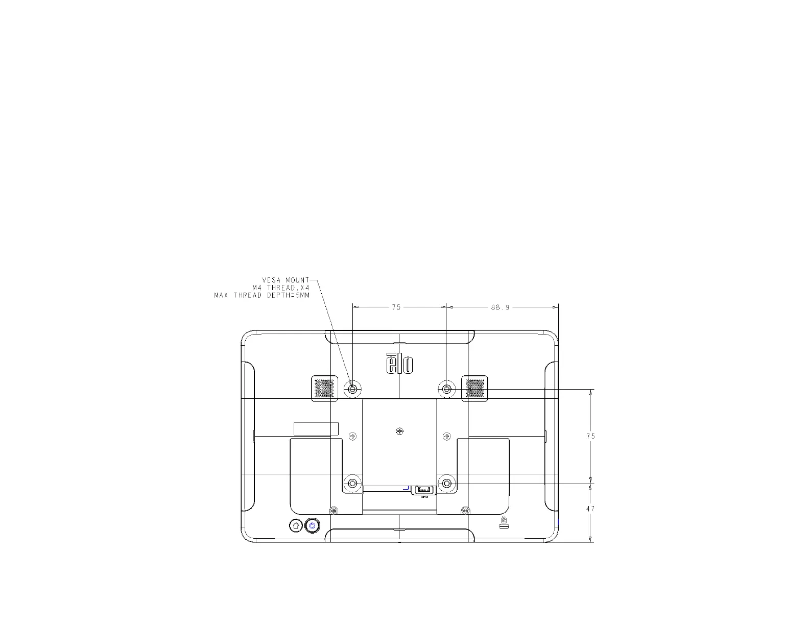 For 10inch mode, A four-hole 75x75 mm a mounting pattern for M4*6 screws are available. The VESA FDMI-compliant mounting is coded: VESA MIS-D,