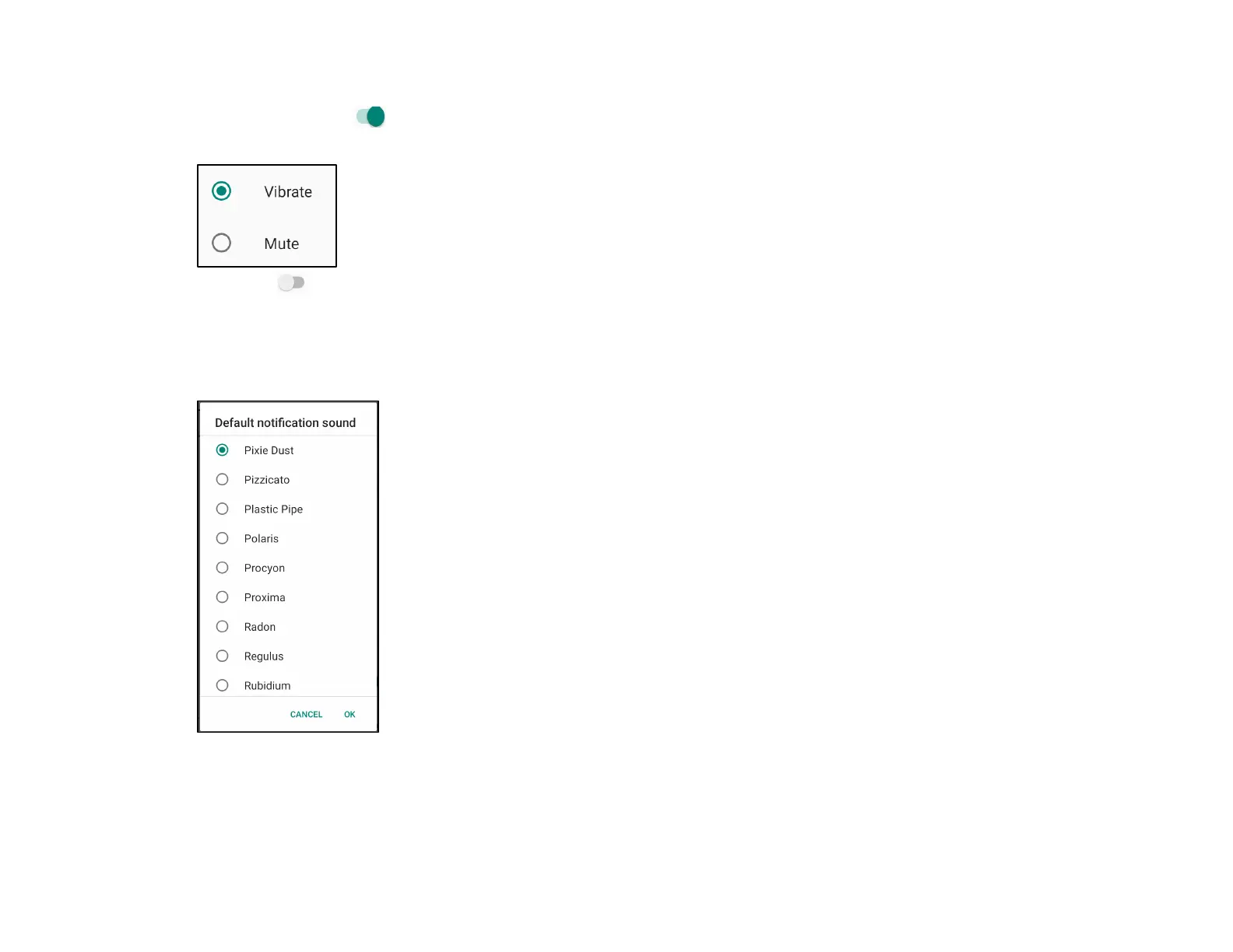 • Select a sound from the list (e.g. Pixie Dust) and tap OK to save.