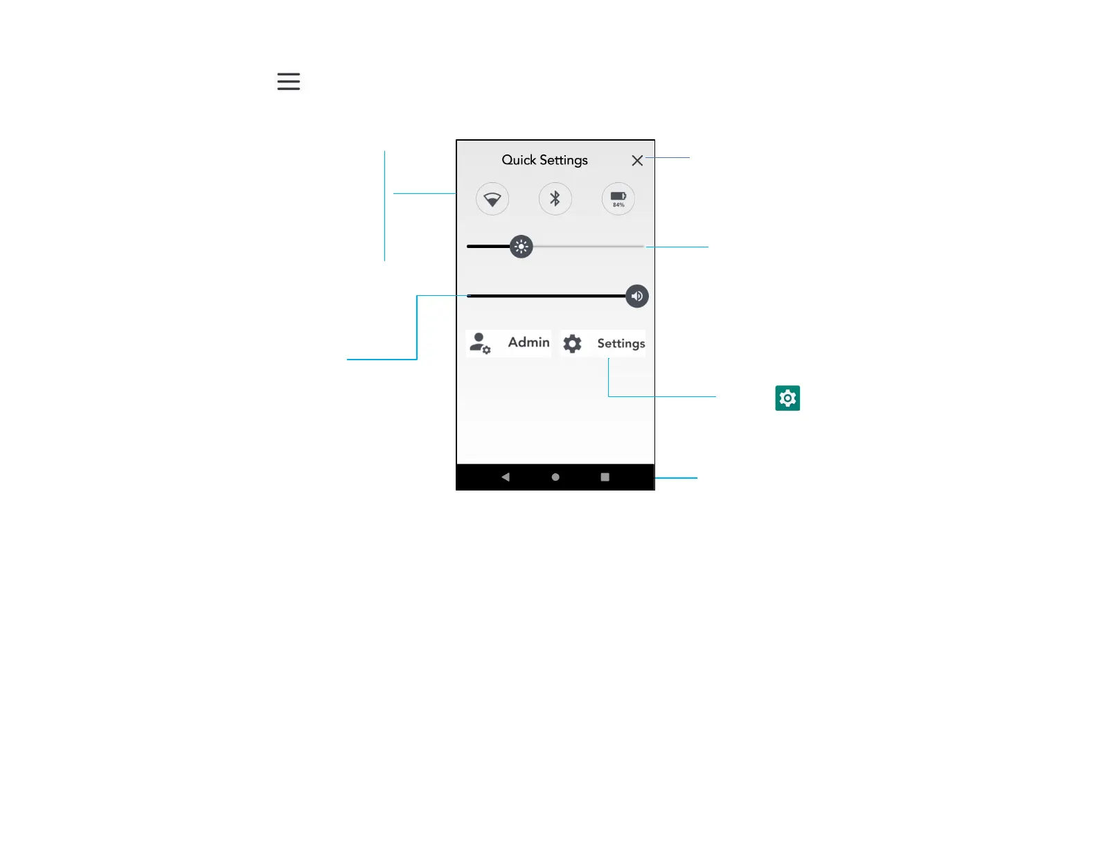 To access the Quick Settings, tap 3 lines menu from Elo Hub Home Screen. Located on the upper right side.