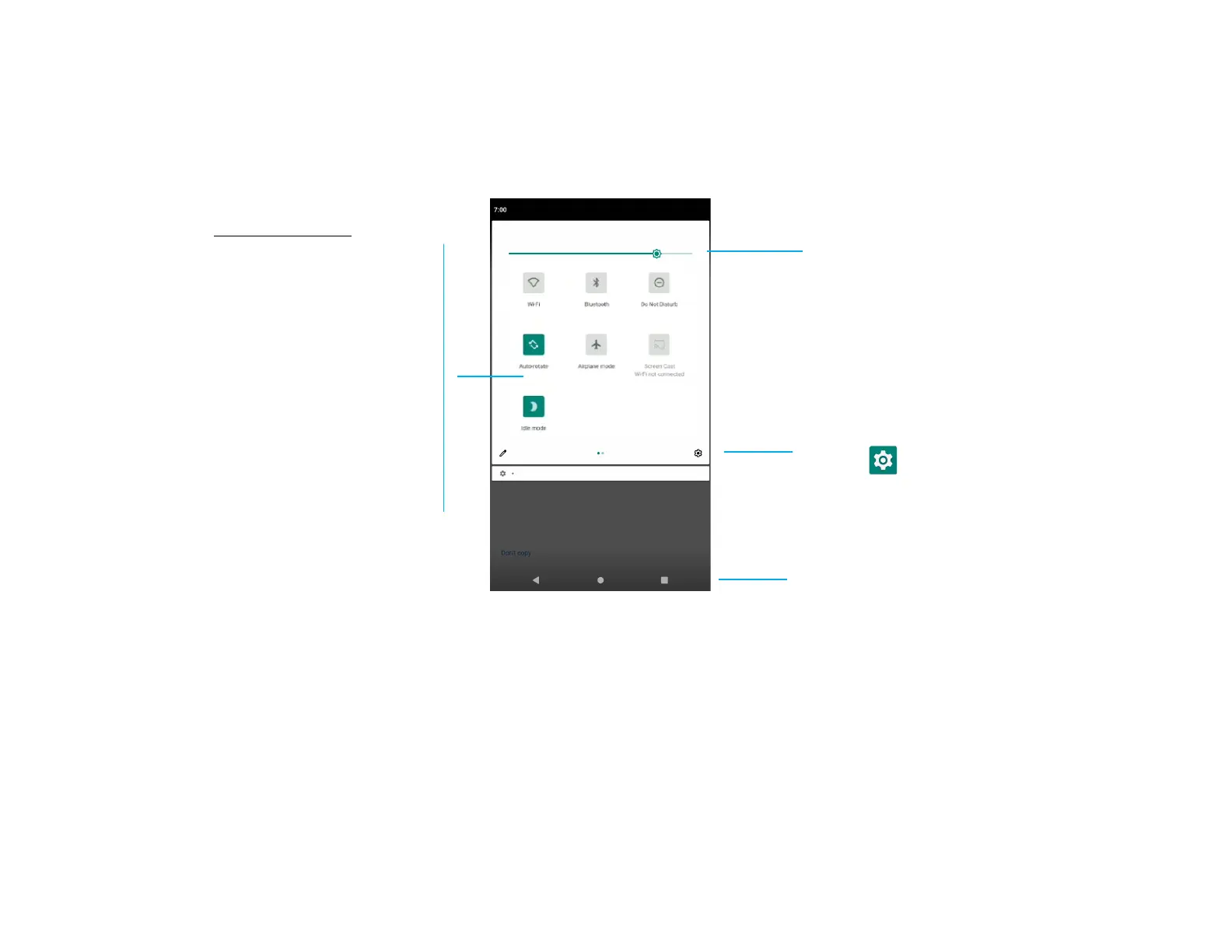Access Panel allows for quick access frequently used settings, Brightness, and a shortcut to Android System Settings.
